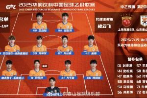中乙预赛第20轮山东泰山B队客场与上海海港B队首发阵容,加油